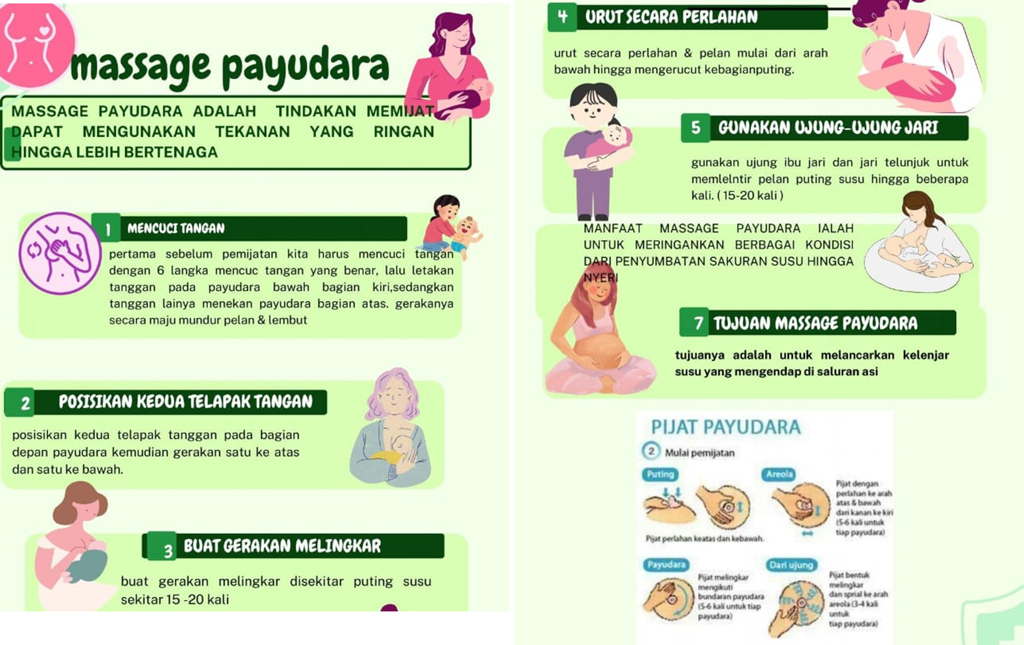 Selain tindakan keperawatan pijat payudara, pemberian edukasi kesehatan tentang teknik dan manfaat pijat payudara. Pemberian edukasi kesehatan ini dilakukan pada hari ke 3 tindakan keperawatan. Materi edukasi melalui leaflet.